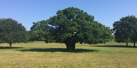 The illustration is a photo of my special oak friend in Richmond Park. Despite being over 700 years old and probably half the size it was in its prime, its canopy of leaves remains lush.