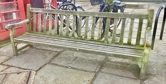 For two hours our guide concentrated on what she saw as important to her audience. That we were walking in a town with an extraordinary history was of marginal interest. Accordingly, we saw where Ted Lasso lives (his front door), the park bench on which he sits to think (see illustration), the pub (name changed) where he drinks and so on. Then, as we passed various buildings, it was ‘In the room behind that window that Bill first kissed Anne’*; ‘At this pub Bill later proposed to Anne’; ‘On those front steps Janice kissed Frank good night and then unlocked the door and went in’ etc. etc.